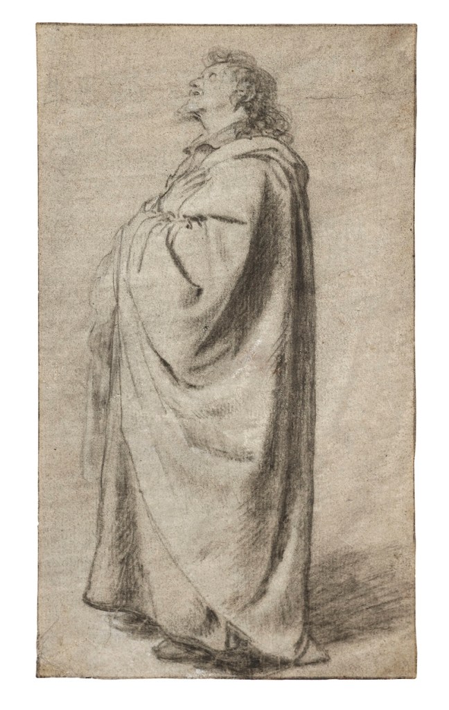Jan Lievens has long been overshadowed by his contemporary Rembrandt, but in the 17th century the artists were close, both personally and in terms of style. They appeared as models in each other’s paintings and may even have shared a studio in Leiden in the 1620s; their style of portrait painting, character studies and genre scenes, heavily influenced by the Utrecht Caravaggisti, became so similar that their peers, it is said, struggled to tell their work apart. This small drawing, a mournful depiction of Saint John the Evangelist that the Rijksmuseum has acquired from Sabrier & Paunet, was produced during that time of close friendship with Rembrandt. Drawn in black and white chalk, it shows the artist’s supreme skill at handling line and shade.