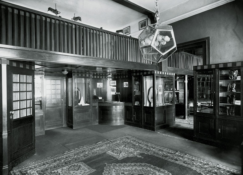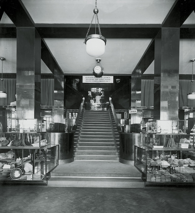 Loos’s most controversial design was for the Goldman & Salatsch store on Michaelerplatz (1909–11). The controversy was precisely about its lack of adornment (one cartoonist portrayed it as a gridded drainhole cover). Emperor Franz Joseph apparently always used another entrance to his palace opposite just to avoid looking at it. But the interior, though less familiar, was equally intriguing: a rich, dark, veneer-encased series of interlocking, complex spaces stripped of the decorative appliqué characteristic of the era. The vitrines form a kind of glass cityscape, a Manhattan skyline of crystal, a city in a city. The interiors were destroyed in 1938 but later reconstructed.
