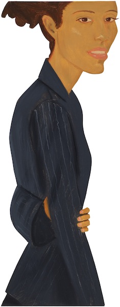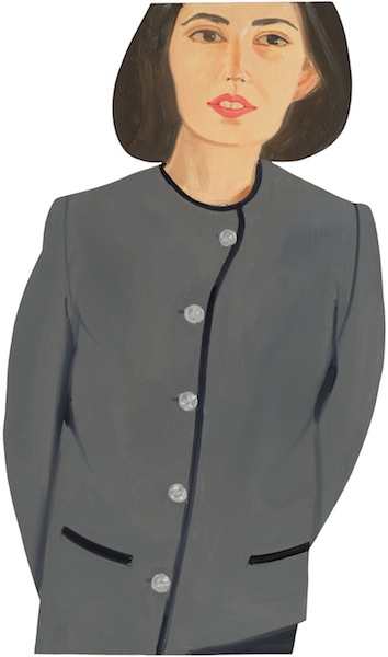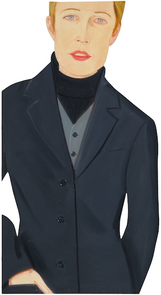 While the freshness and vivid presence of Katz’s portraits makes them seem immediate and contemporary, his use of beautiful models with fashionable clothes and haircuts makes him seem like an ardent chronicler of the recent style history of the bourgeois-bohemian elite. Like stills from the early films of Antonioni, his paintings often present the intensely stylish surface of a single moment. The emotional or social significance of the moment comes to seem enigmatic and loaded. This has sometimes led Katz’s audience to ponder the secret narratives in his pictures, but for him narrative is almost beside the point. ‘I’m interested in appearance,’ he says, ‘and the other stuff’s there, but it’s not what I’m interested in. Ann Beattie wrote a whole book about the relationships in my paintings, where she said this couple’s going to break up because he’s not holding her right…She was right, but I wasn’t thinking about that. I was just trying to get it down on canvas.’ […]
