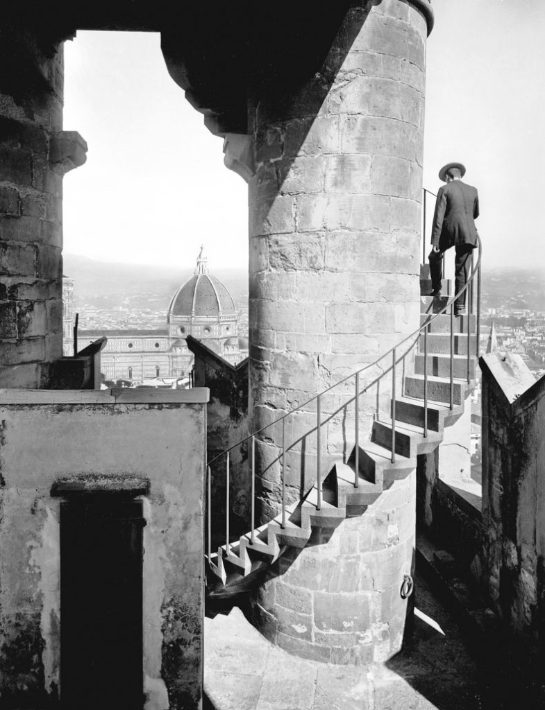 Staircase of the tower of Arnolfo in Palazzo Vecchio and view of the cathedral, Florence (c. 1900), Fratelli Alinari. Alinari Archives, Florence