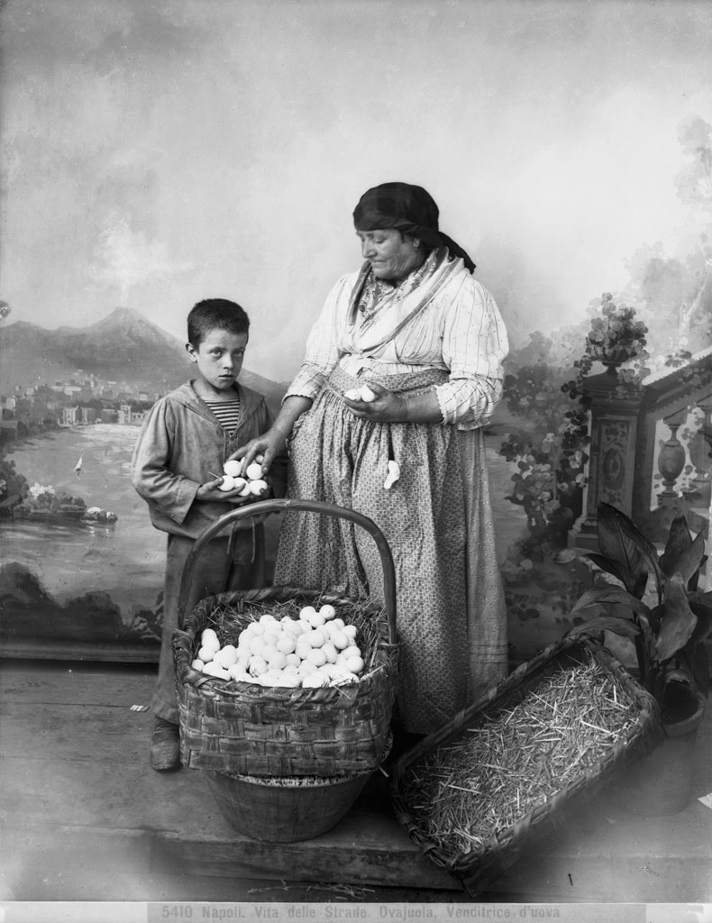 Egg seller in a photographic studio, Naples (c. 1880–90), Gustave Eugène Chauffonier. Alinari Archives, Florence