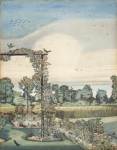 Nash’s watercolours from the 1920s and ‘30s breathe easier than his dense wartime sketches, with a lightness of touch that he never achieved (nor, I suspect, attempted) in oils. But they still leave little to chance. Throughout the show, I was struck by the structures that weigh down the artist’s washes: his methodical hatching in pen and pencil, that divides up the page like a tapestry; the ruled edges of his architectural elements; the grids, colour notes and revised outlines sitting visible under thin washes of paint.