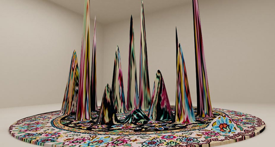 AM: There are no perpendicular walls in the sweeping spaces of the Heydar Aliyev Center so naturally the works are arranged differently in the new space. Faig Ahmed’s cotton threads stretch right across the space and natural light pours through Farid Rasulov’s sculptures. My piece in the show, Recycled, is composed of window fragments I salvaged some years ago from a local derelict building, and incorporates multiple reflective surfaces. These mirror the environment in a really interesting way that I couldn’t have foreseen while making the work.