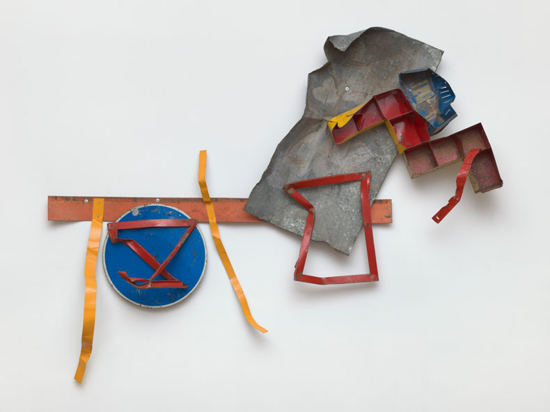 Inspired by the abandoned cars and rusting gas station signs he saw on a trip to Houston in 1985, Rauschenberg embarked on what would be his last sculpture series, a witty group of assemblages fused from old car parts, stop signs and other scrap metal picked up both in the United States and, later, on a trip to Naples. The series was last seen together in public at the Peggy Guggenheim Collection in 2010; the artist’s centenary is an apt moment to reunite them.