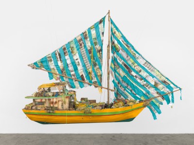 In his east London studio, the Scottish artist blocks out the neighbourhood chaos with noise-cancelling headphones and tennis commentary