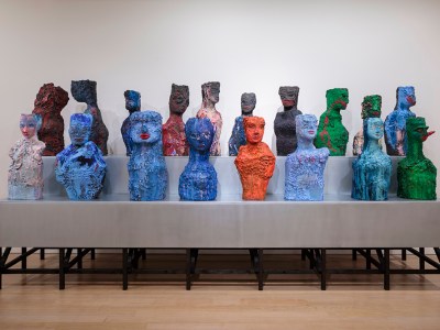 An expectant audience of ceramic busts forms the centrepiece of David Silver’s solo exhibition at the Fruitmarket gallery in Edinburgh