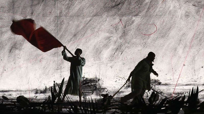 His new project for the Ullens Center for Contemporary Art, Notes Towards a Model Opera, part of a retrospective which runs until 30 August, was inspired by the footage of the propagandising Model Operas Madame Mao created during the Cultural Revolution. For Kentridge, this episode provoked comparisons with other upheavals – student riots in Paris in 1968, the Paris Commune in 1871 – and with his regret in 1968 ‘that I had been born five years too late in the wrong country. If I had been five years older, I could have been part of the student protests in America or Paris, that’s where real life was and somehow life had passed me by – which is a sense of being stuck in the colonies, on the periphery, in Johannesburg.’
