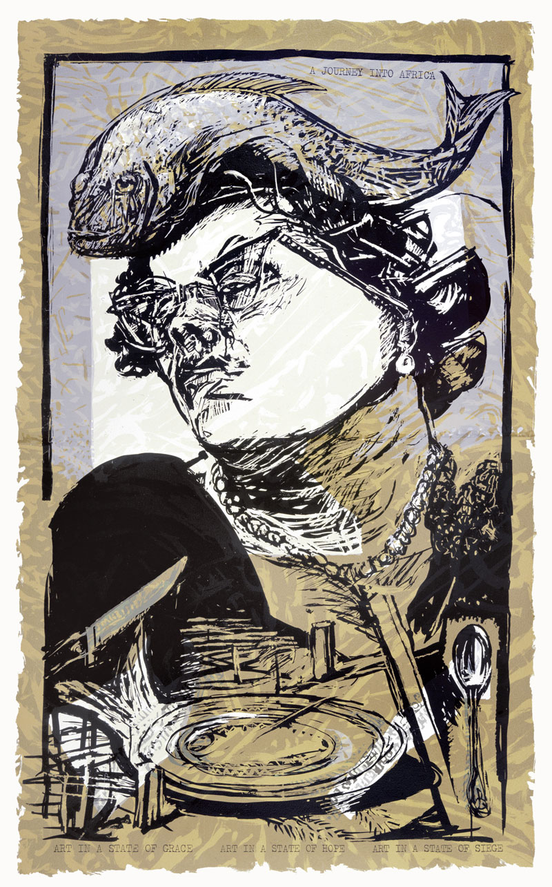 Kentridge read politics and African history – preoccupations that have continued to feed his work ever since – at Witwatersrand University, in Johannesburg. He then went to art school, where, he explains, ‘To be an artist was to paint with oil on canvas.’ Drawing was merely ancillary. ‘Cackhanded,’ as he puts it, ‘with colour,’ and demoralised, he took an evening class in etching. ‘It felt fantastic,’ Kentridge recalls. ‘It let me think, okay, there is a way of being an artist in which colour doesn’t have to be the starting point.’ Through etching he discovered the whole history of printmaking and the first, largely black and white, century of photography. ‘Series of drawings come out of prints and sometimes even theatre projects come out of prints,’ he explains. ‘As does this Lulu production, since what predates it are the linocuts, as a way of thinking before the production began.’ He adds, ‘There is also a way of thinking of an etching as an extraordinarily, ridiculously complicated form of animation, different states of the plate, when you know that you will rework them.’ For Kentridge these mediums are not value free: he reminds me, for instance, that linocut is the tool of the disenfranchised in Africa. Its lineage goes back to Swedish Lutheran missionaries in Rorke’s Drift, Natal, in the 1960s and 1970s, who taught printmaking under the influence of German expressionism, which in turn drew its inspiration from African masks. One chapter, as Kentridge describes it, in ‘the calamitous history of colonialism’.