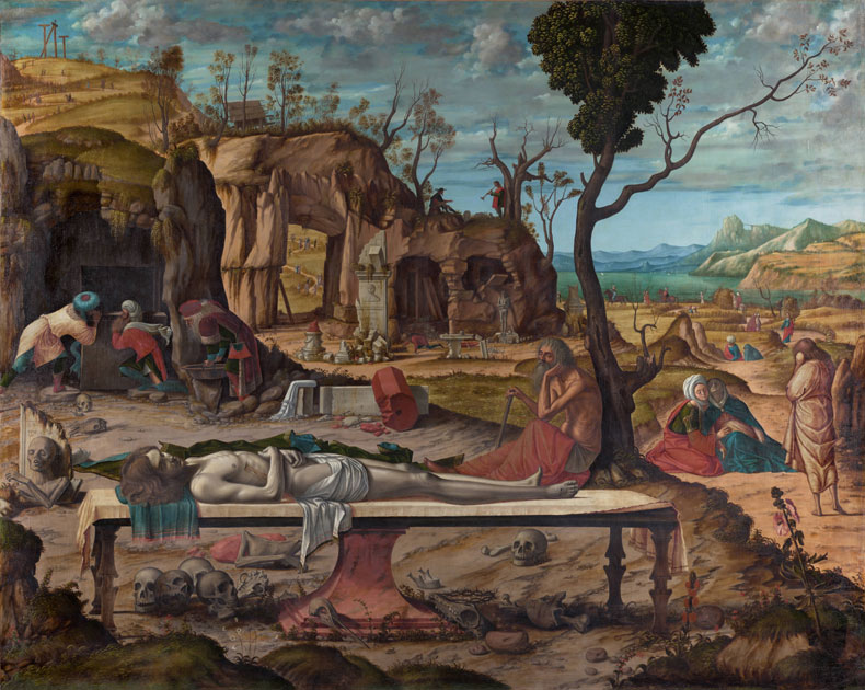 The Preparation joins a suite of Carpaccio works, including two of the Schiavoni paintings and the complete Ursula cycle, that have been restored in recent years. Yet the restoration of this painting has done nothing to resolve its mysteries; it has, if anything, made them more compelling. Removing layers of yellowed varnish and grime has restored to focus the artist’s knife-sharp handling of the textures of stone, fabric and vegetation. The pattern of orangey-red areas, which draw the eye from the reddish stone of the base of the table on which Christ is laid all the way to the crimson tabard of the musician in the distance, is warmer and brighter now. This enhanced visibility makes clearer what it was Henry James saw in Carpaccio and what we might too: visions of the ordinary world intensified through attention. The way the world might look through the eyes of someone restored to life.