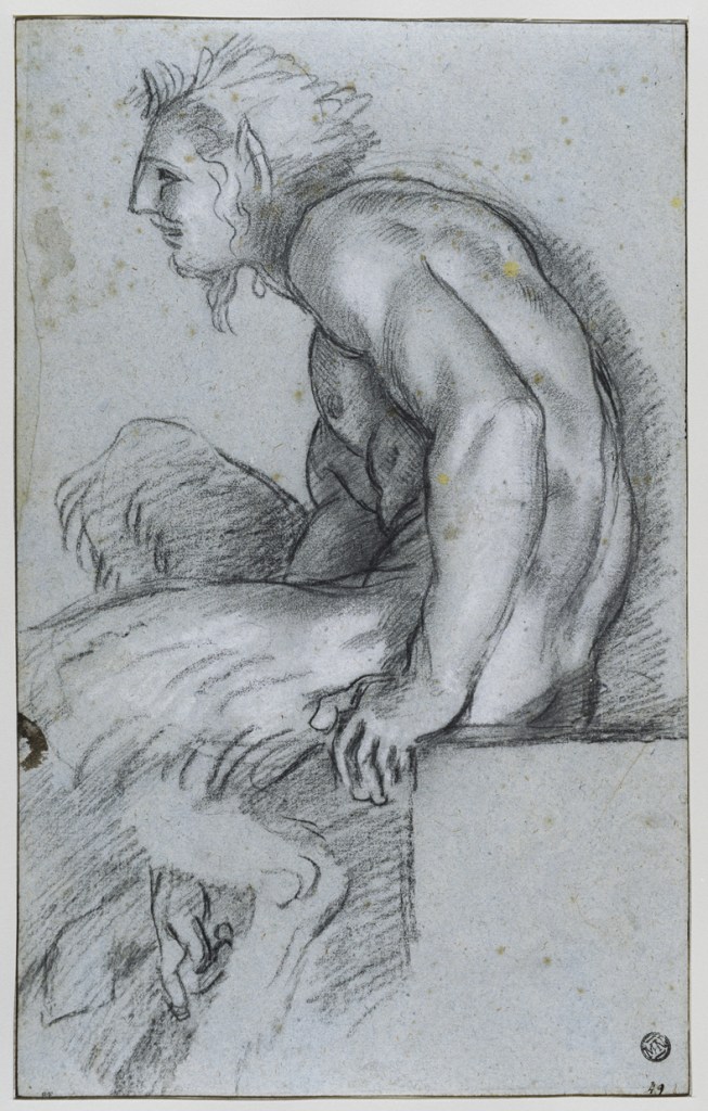Study for the satyr sitting at the left corner of the frame of ‘Polyphemus and Galatea’ (n.d.), Annibale Carracci. Musée du Louvre, Paris. Photo: Suzanne Nagy; © Musée du Louvre, dist. GrandPalaisRmn