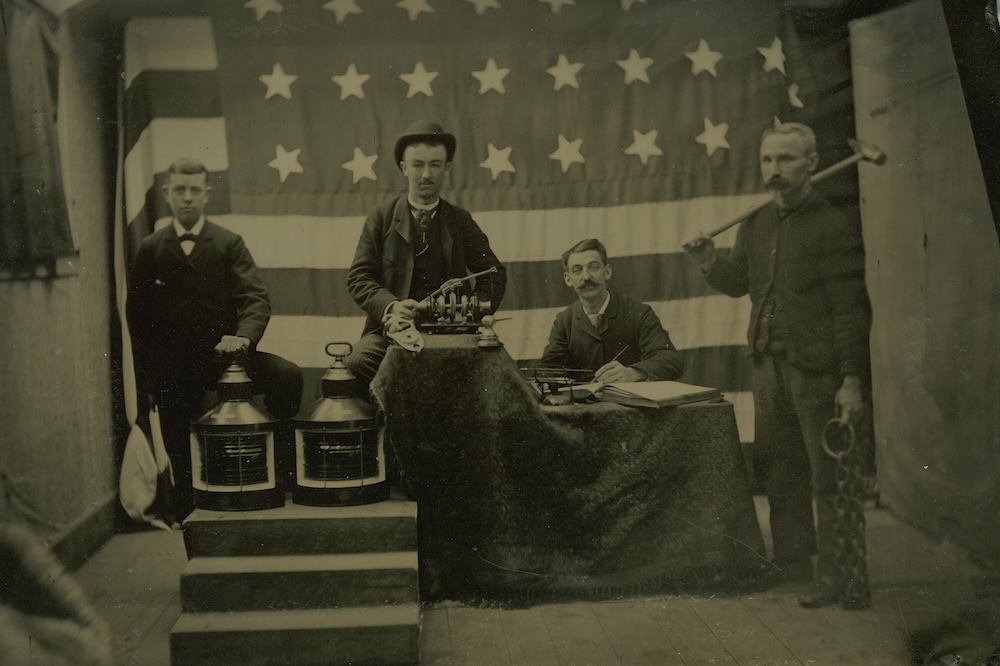 Hans P. Kraus, another New York dealer, has also noticed a resurgence of interest in daguerreotypes from younger collectors and artists. There is still some market, he thinks, for great classic images and albums – such as an album of 25 mammoth-plate views of Yosemite by Watkins he sold three years ago, or the iconic mammoth-plate image of a lone pine tree in Yosemite taken by Charles Leander Weed in 1864, which Kraus will be taking to the AIPAD Photography Show in April. Kraus will also take a curiosity: a whole-plate tintype of a railroad telegraph car with three men sitting at a telegraph machine, ‘with a huge American flag behind them’. He notes strong interest in anonymous photographs well-composed and in good condition, dealing with subjects such as the American Gold Rush, along with images of or taken by African Americans.