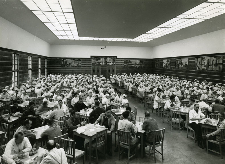 The Freia Frieze did not stay in the women’s canteen forever. It was there for 11 years, whereupon the paintings had to be moved to a brand-new refectory in 1934. Munch was still alive at this point and was involved in the rehanging of the paintings across three long walls rather than two, as they had been arranged originally. The opening of the new factory was a cultural milestone: there were orchestras based there, lectures for staff, a theatre group and even a piano donated by the Norwegian composer Edvard Grieg, and the opening weekend saw a whole tranche of festivities that attracted some 10,000 people.