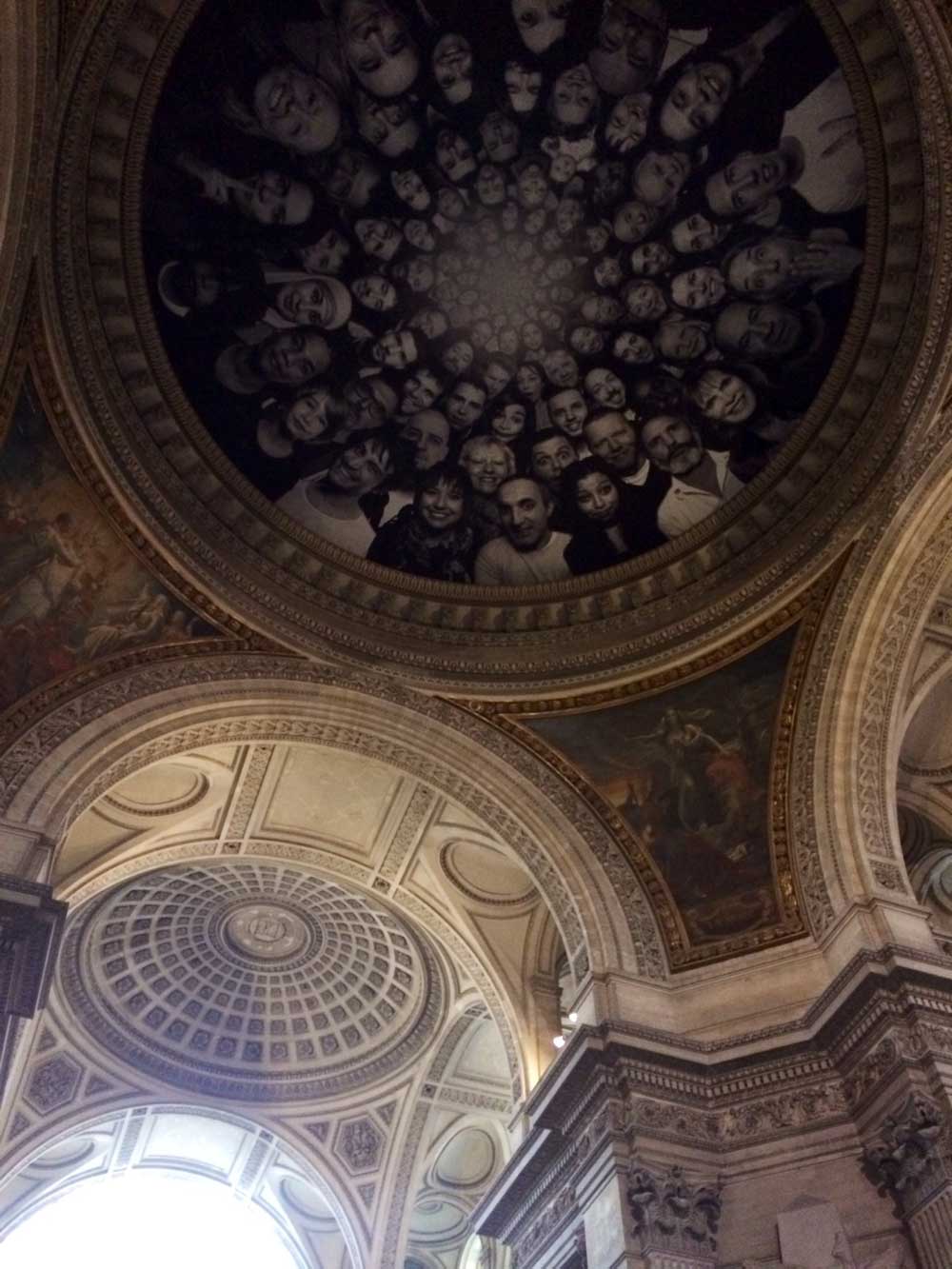 Part of JR’s installation, around the exterior of the cupola, adds a decorative element to restoration work on the structure of the Panthéon. This is seen by some as a welcome change to monuments being covered with giant adverts while undergoing restoration. The Conciergerie, the Monnaie de Paris, and the hôtel de Laffemas on the Place des Vosges have come under criticism for selling space on their covered facades to advertisers. Philippe Bélaval, president of the Centre des monuments nationaux, the body that manages the Panthéon, told Le Monde he is ‘hostile to publicity on monuments that have a sacred dimension’.