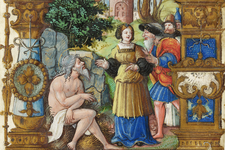 Page from a Book of Hours depicting Job on the dungheap (c. 1540–46), France. Les Enluminures at Fine Arts Paris