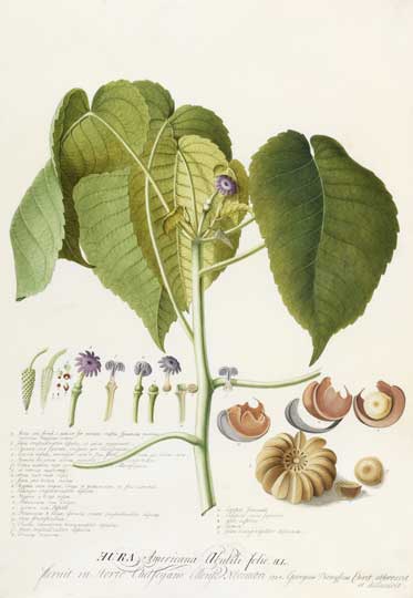 Hura crepitans, L. (Euphorbiacae, Sandbox Tree) (1738), Georg Dionysius Ehret © Fitzwilliam Museum, Cambridge