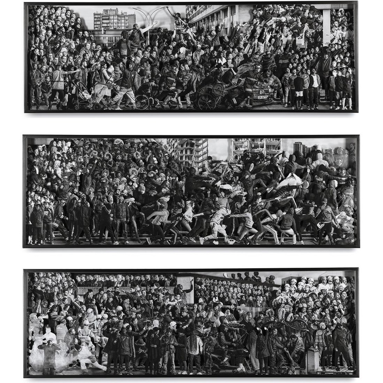 JR’s monumental photographic triptych assembles some 800 portraits of residents from the Paris suburbs of Clichy-sous-Bois and Montfermeil, creating an epic 36-metre mural that lends street photography the grandeur of history painting. The work chronicles neighbourhoods marked by the 2005 riots that followed the deaths of two teenagers during a police chase, giving personality and dignity to communities typically represented through statistics and stereotypes. JR’s project insists that there is far more to Paris than picture-postcard monuments. Click here to read more.