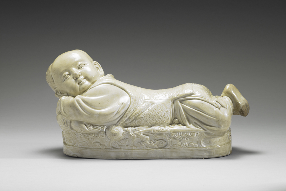 Pillow in the shape of a recumbent child in white glaze (Northern Song dynasty, AD 960–1127)