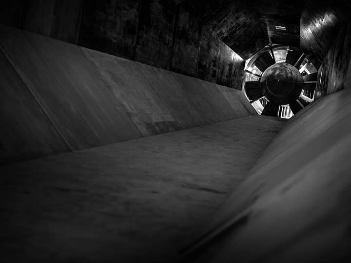 The enormous wind tunnels at Farnborough were once part of an even more expansive flight testing centre that was home to some of the most significant developments in 20th-century British aviation. Reopened for the first time in decades, they now play host to a set of artistic interventions that respond to, and give themselves over to, these extraordinary halls and their history. The Wind Tunnel Project is organised by Artliner with the V&A’s Salma Tuqan: click on any image to open the slideshow.
