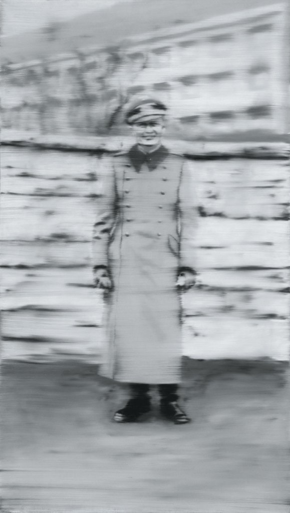Context creeps in, nevertheless. Much of Richter’s early figurative work, based on black-and-white historical photographs subjected to his signature blurring, is ghosted by hindsight, by implicit reminders of what happened after the original image was made. Here, in Uncle Rudi (1965), is the smiling face of uniformed fascism and its horrific proximity within one’s own family line; here, in Aunt Marianne (1965), is Richter’s schizophrenic aunt, happily holding the artist as a baby in the mid 1930s, unaware that soon enough she will be euthanised by the Nazis. Here, in the Warholian Eight Student Nurses (1966), are the young women, mostly smiling, who will become victims of a mass murderer in Chicago. The power of these works derives from a multivalent shimmer: the images feel inaccessible and the narratives they point to certainly irreversible; the blur creates a sense of remove and of the artworks unavoidably, melancholically arriving too late. At the same time, the blur points to loss and the paintings also present an artist locating pictorial and conceptual space where none appeared to be – moving on somehow.