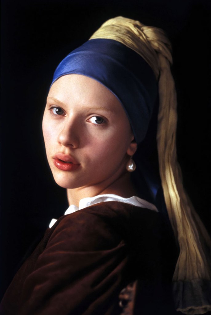 Scarlett Johannson, photographed and lit to resemble Vermeer’s Girl with a Pearl Earring in the 2003 film of the same name, dir. Peter Webber. Courtesy Reel Art Press