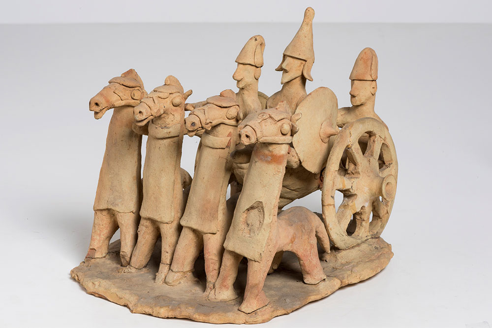 Model of a horse-drawn chariot and rider from the Sanctuary of Agia Eirini, Cyprus, (750–600 BCE). © Cyprus Department of Antiquities