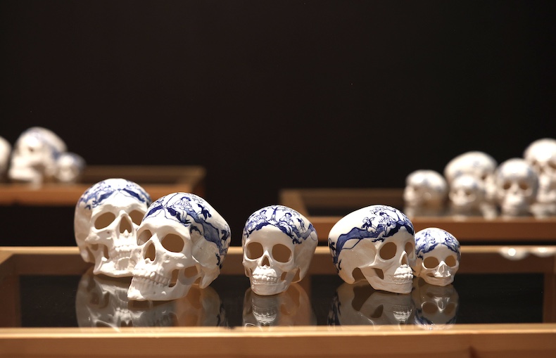 Questions of replication and imitation in the gallery are often settled as matters of influence or inspiration. But at the Walker they are shown just as often to be matters of commerce. As the curators explain, ‘Turner was as passionate about selling his art as he was about making it’ – an understanding of his approach to art that skilfully reframes the commercial copying of Turner’s work across biscuit tins and stamps, handbags and a pair of (truly unsightly) Dr. Martens. At the same time, viewers are invited to notice mass production and commodity culture as themes of Turner’s paintings. Thus, the porcelain cup depicted in Richmond Hill (c. 1825) is drawn out of the frame, as it were, when placed next to a series of objects ranging from an exquisitely delicate 18th-century soft-paste porcelain mug to Christine Borland’s English Family China (1998), a set of ceramic skulls cast from life that evoke histories of colonialism and enslavement. Such curatorial choices make clear that the paintings in this exhibition are themselves commodities deeply entangled in systems of exploitation and obligation. This is especially true of the many objects in the gallery and the exhibition that were collected by William Hesketh Lever, whose wealth came in part from his involvement in the atrocities of the Belgian Congo.