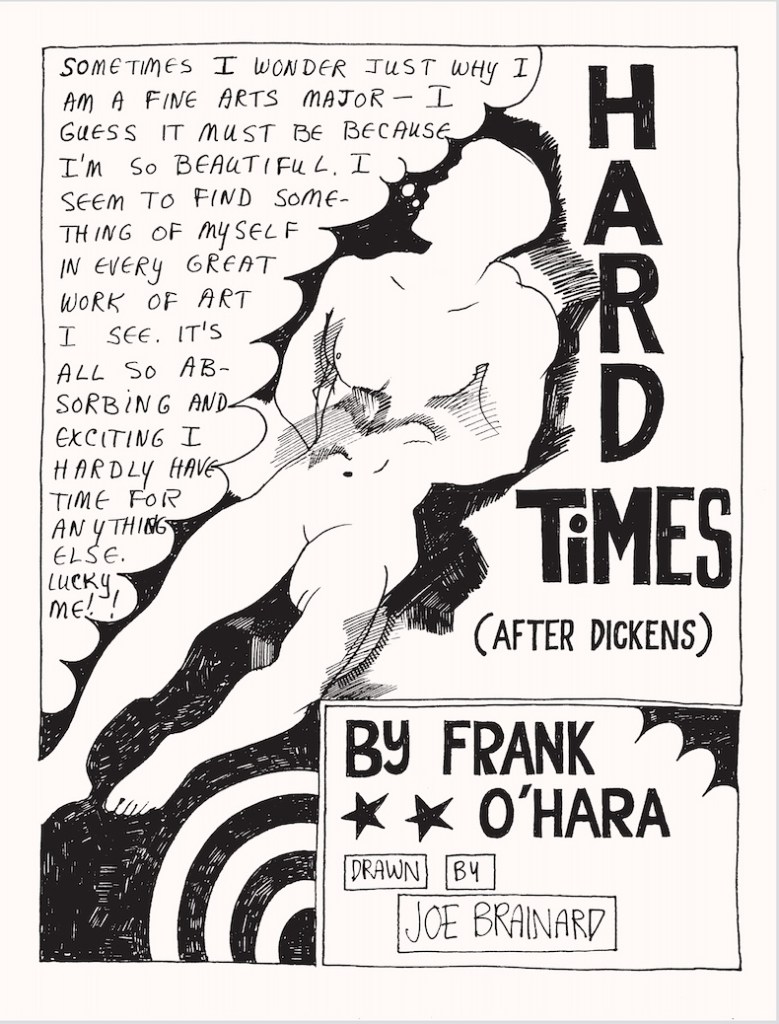O’Hara also wrote ‘Hard Times (After Dickens)’, with Brainard characters that look drawn or traced from men’s fitness and muscle magazines, and who are shallow art students: ‘Sometimes I wonder just why I am a fine arts major – I guess it must be because I’m so beautiful. I seem to find something of myself in every great work of art I see.’