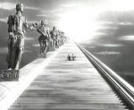 To complicate all this, details from Joan Miró paintings have been dropped into the mix and the silhouettes of figures filled in with primary colours. They jar as sharply with their surroundings as the toons playing out the key roles in Roger Rabbit do with their live-action counterparts. Naturally, none of the source paintings or films are identified. Each one is a charity shop jumble of high and low culture, with more or less the same comic value as that Sven-Göran Eriksson classical compilation. Or perhaps even the ‘Pure Beauty’ catalogue.