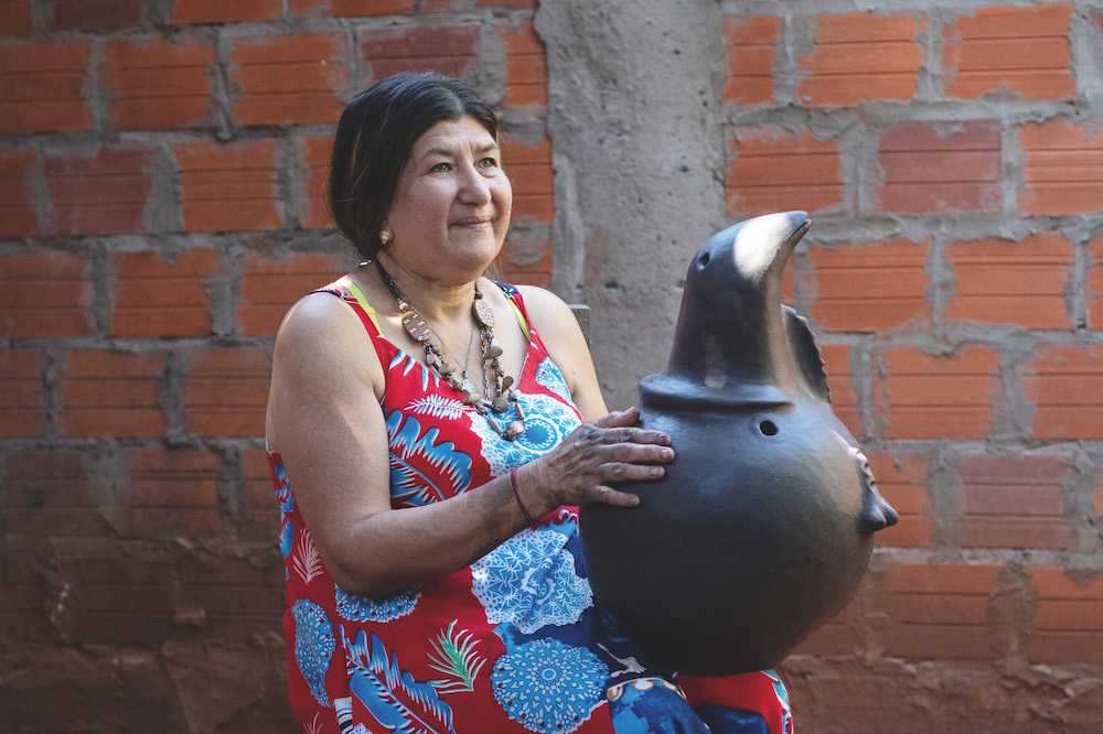 The Paraguayan city of Itá is known for its ceramics: a lively trade in black pottery has long been important to the area’s economy. The Guaraní sculptor Julia Isídrez was born in Itá and still lives there, and over the years has created a kind of amphibious menagerie: her ceramics often resemble familiar creatures, such as puffer fish, axolotls and conches, as well as otherworldly beasts that seem more friendly than fearsome. Usually black but occasionally cream-coloured, Isídrez’s sculptures celebrate physical diversity and put a fanciful twist on craft techniques that stretch back generations: Isídrez learned pottery from her mother, Juana Marta Rodas, who learned it from her mother, who learned it from hers; for several decades Isídrez and Rodas exhibited their work together, in Paraguay and abroad. More recently Isídrez presented a range of sculptures, from miniatures to metre-high works, at the 2024 Venice Biennale.