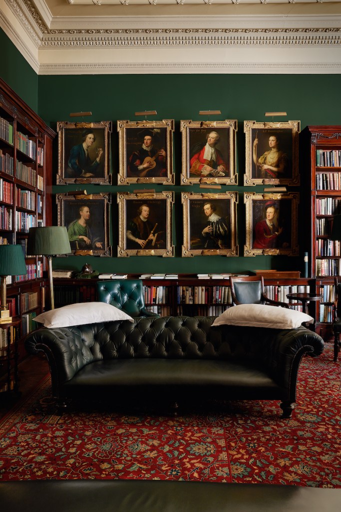 Portraits of Society of Dilettanti members by George Knapton overlook a Chesterfield in the Library at Brooks’s. Photo: Laura Hodgson, courtesy ACC ART Books