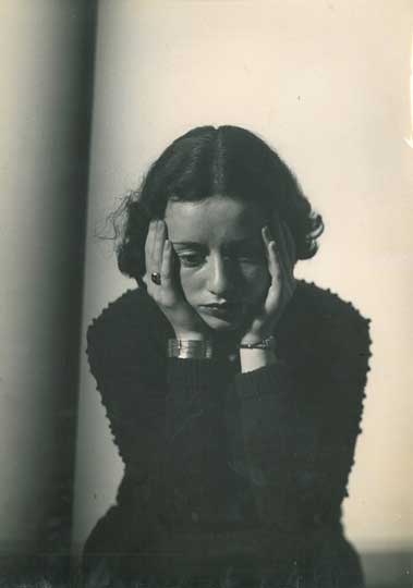 Fleeing the persecution that came with the rise of the National Socialists, Krüger emigrated to London in 1933, and began a dizzyingly nomadic lifestyle that she documented using her waifish 35mm E Ludwig Lausa Dresden Vidar camera. It’s a picture from this year that was we see first in the show – a self-portrait of the determined, soft-eyed 19-year-old in a coarse dress, hand planted on hip, eyebrow arched. Beside it, there is another portrait of Krüger – in Paris, after a year spent training as a photographer in Barcelona – this time taken by Bauhaus graduate Florence Henri, under whom she studied. In it, the effusive confidence from just two years before appears to have been slightly weathered, now revealing a pensive, troubled and profound beauty.