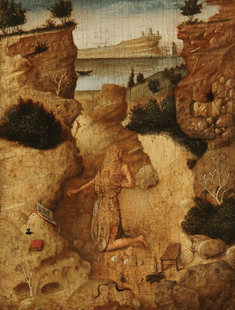 The Italian government paid handsomely for not one but two paintings last month: Caravaggio’s Portrait of Monsignor Maffeo Barberini (c. 1598–99), which it acquired for €30m, and Antonello da Messina’s Ecce Homo (c. 1470), on which it spent €12.6m. But Rakewell’s eye was drawn not so much to the recto side of the latter, with its forlorn-looking Christ, as to the verso, in which Saint Jerome, kneeling in a rocky landscape, beholds a book. At least, it looks like that’s what he’s doing. It’s hard to tell, because a previous owner’s repeated kissing of the painting has worn Saint Jerome’s face clean away.