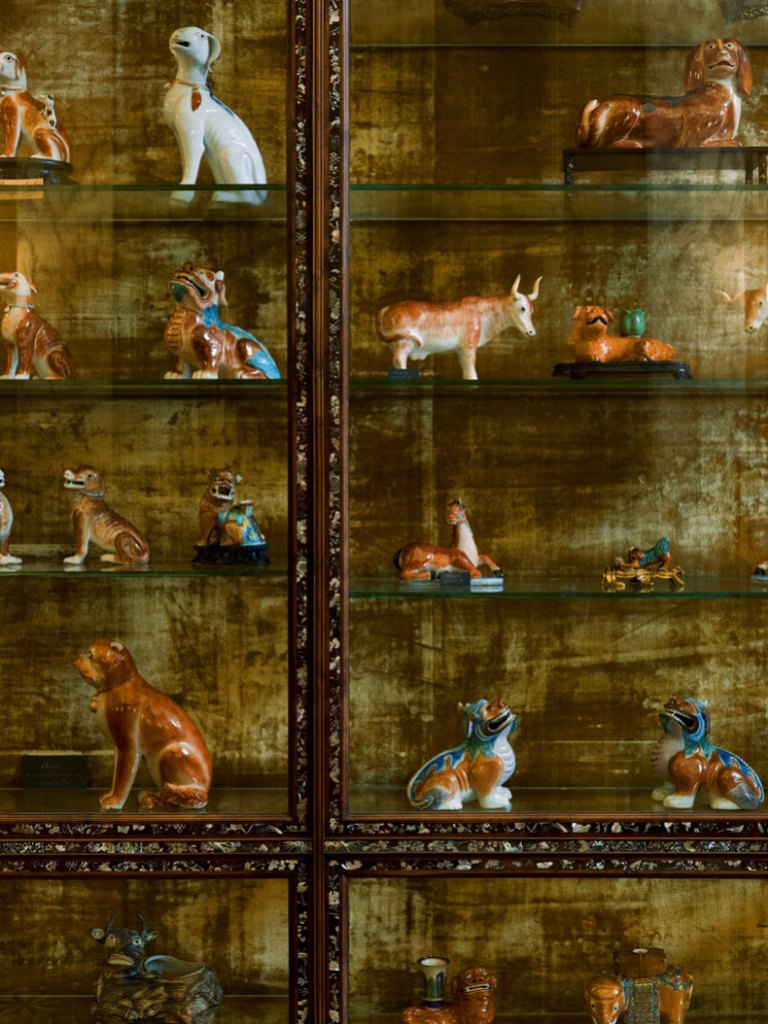 Seventeenth and 18th-century dog lions were some of the first things she bought, some in their original state, others with ormolu. ‘She would buy many funny things,’ says Baptiste, ‘because she had different criteria for her collection. At first, she started mostly with China, Chinese porcelain, and particularly Chinese monsters […] She also said that some of these chimeras looked like ladies that she knows and she found that very funny.’ Yet the collection is not thoughtless.