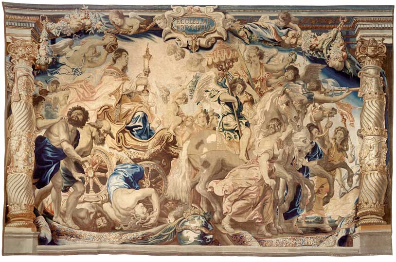 Tapestries were the principal way of displaying wealth, power, magnificence, or even piety when given to a monastery. Rulers sometimes kept tapestry docents on hand to educate visiting diplomats on their master’s extravagant hangings. Designed by top artists from Raphael to Rubens, most were woven in northern Europe.