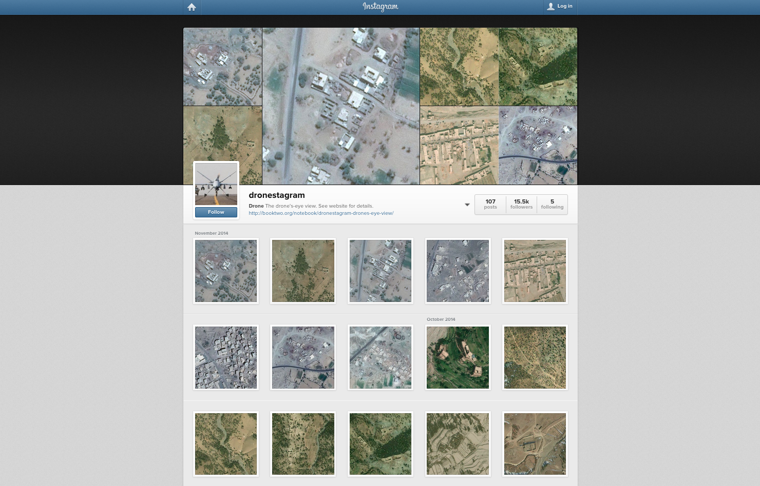 Drones have been around for over a decade but they are presently riding a hype spike. This month’s reports from the 2015 Consumer Electronics Show were dominated by selfie-taking micro helicopters and the like. When a toy drone operated by a US National Geospatial-Intelligence Agency employee crashed in the White House gardens this week, this playful field around miniature drones collided with public consciousness surrounding governmental drone use. Although they are just another category of networked devices, being airborne makes drones interesting to artists just as to the State as they bring aerial perspectives and dislocated agency. Bridle told The Art Newspaper earlier this month: drones are ‘glamorous and seductive objects’ for artists.
