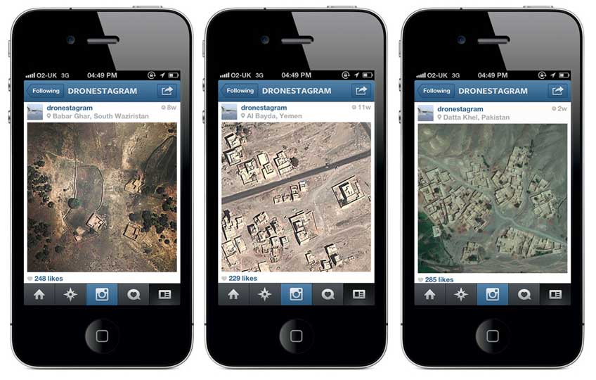 Speaking at the Royal College of Art later on the day of his near-arrest, the artist, writer, technologist and online publisher, said he structured the residency around walks because he wanted to lighten up. His Drone Shadow series had outlined the shapes of military drones at full scale on the ground in Washington D.C., London, and Istanbul, while his cult project Dronestagram tracked drone strikes around the world – just two of many in a similar vein.