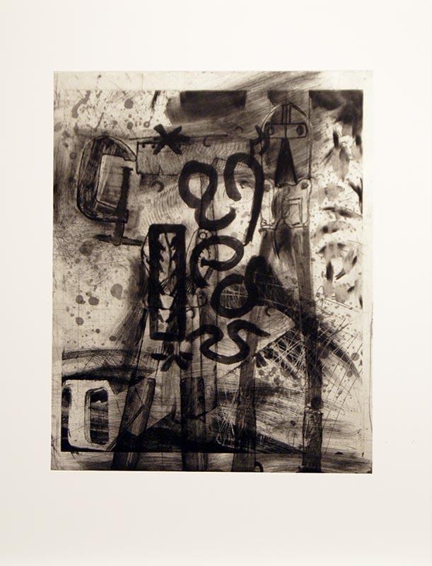In the second space – completely cut off from the first by a partition wall – is ‘A History of Communism’, a series that Dine has worked on for two years. Some time ago, two printer friends presented the artist with 100 lithographic stones found in what was once a Socialist art academy in East Germany. Dine was immediately taken by the images, and decided to appropriate them into his own work.