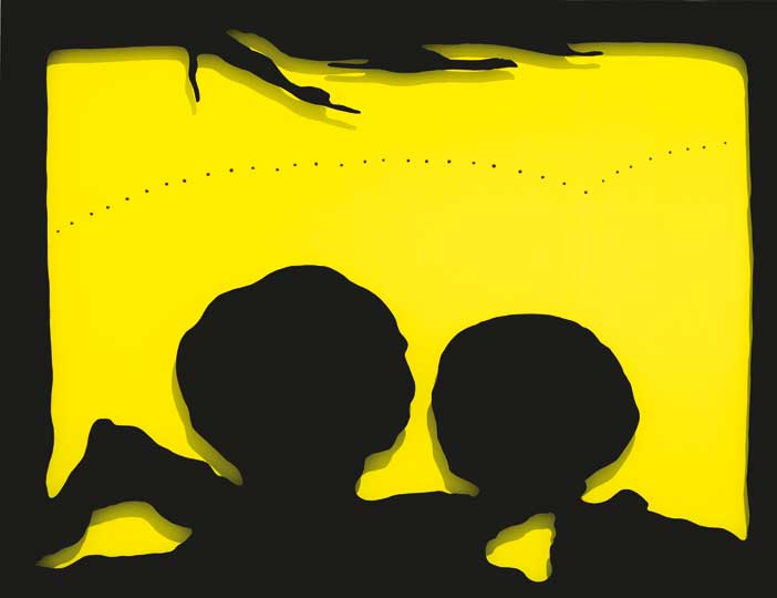 Indeed, Fontana’s first foray into ‘Lo Spazialisme’, the art movement he founded, was a ceramic cube, Ceramica spaziale (1949), exhibited here. This was his annus mirabilis. That same year he also created L’Ambiente spaziale a luce nera, a darkened room in which papier mâché shapes, painted in fluorescent colours, are suspended and lit from above – Fontana’s first environment.