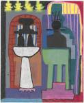 Work from the 1960s and early ‘70s is tentative, transparently in thrall to Cubism and Op-Art. But already, there’s something distinct about them; in 7 Bathing Hut, for example, black rectangle frames and tight scribbles of crayon at different angles suggest something kinetic and unstable, reminiscent of the frenzied bustle of a nightclub.