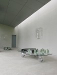 The current display isn’t a full reunion: Thursday, Friday and Sunday are not on display, leaving you guessing at a story (if there is one), and the artists have created a new work, Something for the Weekend, a transparent test tube of joined-up glass bowls, balanced on champagne flutes, weird and wobbly looking. The works hover behind the glass wall of the gallery as guests hover outside or slip in through the narrow entrances, tiptoeing around the precarious low tables on the floor.