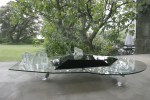 Bill Woodrow and Richard Deacon are no strangers to such work. As recent solo exhibitions at the Royal Academy and Tate, respectively, have proven, they can turn out successful sculptures of their own on a scale to match. In fact, there’s a Woodrow right outside. But the collaborative pieces of glassware that make up ‘On the Rocks. Again’, are improbable exercises in small, breakable baroque – they revel in their fragility.