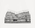 By contrast, Brennan’s piece, entitled A Fall of Ordinariness and Light (The Enabling Power), is restrained, understated and a little disappointing. It is a sequence of four images of a block of flats – Robin Hood Gardens in East London. The building seems to be collapsing, but on closer inspection it turns out that it is the image, not the building, that is being crushed. It is in fact four drawings of a photograph of the building, and it is the photograph that is becoming progressively crumpled.