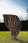As you turn into the Yorkshire Sculpture Park there is a spot on the left hand side, on a little rise at the top of the long hill which sweeps up from the lake, which can be seen from all over the park. It is here that Ursula von Rydingsvard, a sculptor highly regarded in America but hardly known in Britain, has chosen to place her newest work. A spectacular six metre high bronze sculpture spiralling outwards from a narrow foot, the triumph of Bronze Bowl with Lace is its crown of bronze filigree flaring from the top.