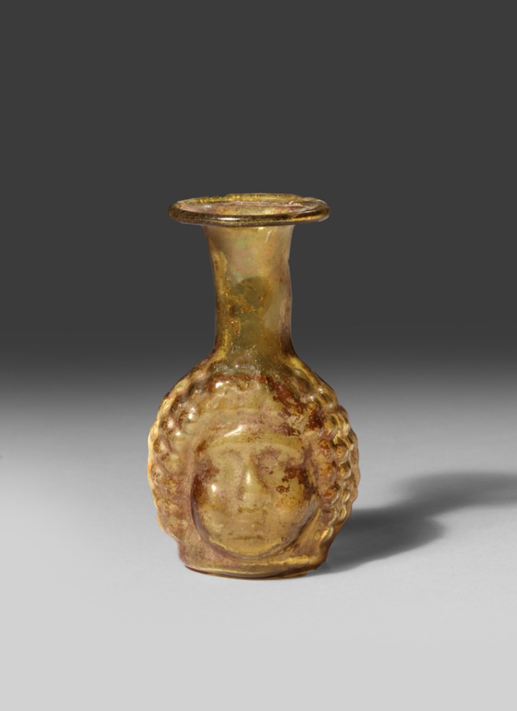 Janiform Roman glass head flask (3rd–4th century). Courtesy Kunsthandel Mieke Zilverberg