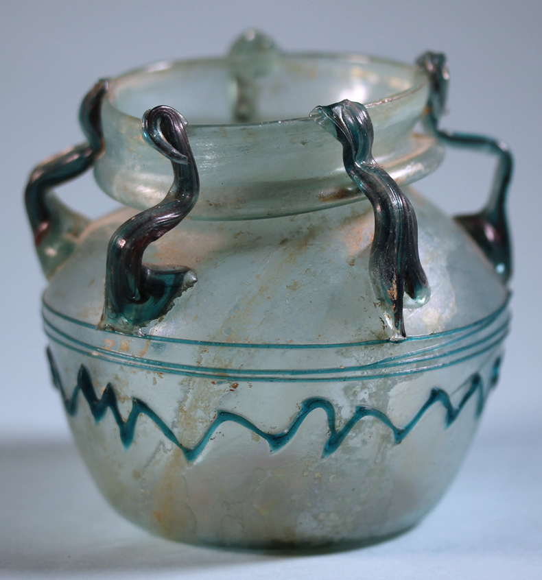 Roman glass jar (2nd–3rd century). Courtesy Hixenbaugh Ancient Art