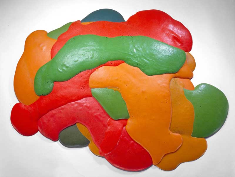 Then there’s the body, which has always been an important reference. When I started to make objects – I’m thinking here of my early encaustic paintings – I thought in terms of the length of my arm and then later my height and how wide the brushstroke was or how wide my body was. I imitated that scale and the skin’s surface. I used wax and then latex rubber and semi-flexible foam – all of which have a very tactile quality.