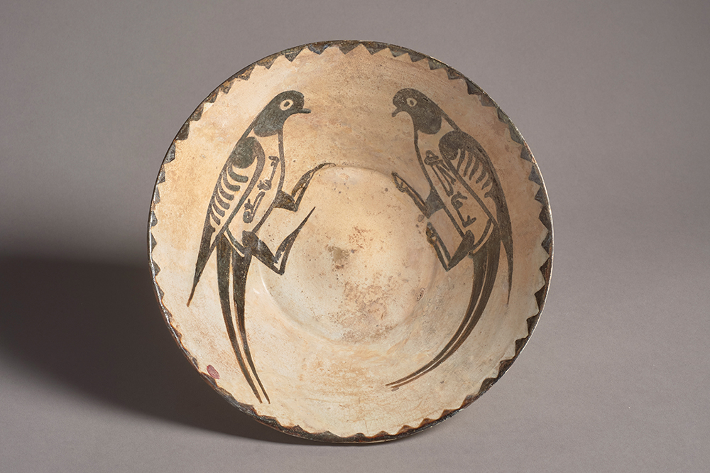 Earthenware bowl with two birds and inscriptions made in Nishapur, Iran in the 10th century. Galerie Kevorkian (€10,000–€50,000). Photo: Thierry Ollivier; © Galerie Kevorkian