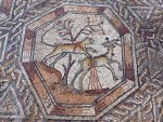 It’s a very rich, late Roman work, composed of rectangular concentric frames. Inside are nine medallions, octagonal in shape: five of these depict animals fighting or hunting; two depict fish, showing species from the Mediterranean Sea; and two others reveal birds – doves and partridges beside objects, including an amphora and a basket of flowers. Based on the ceramic shards found during the excavation, and on numismatic – as well as artistic – grounds, we have dated it to the 3rd century. This mosaic is the best of the Roman tradition.