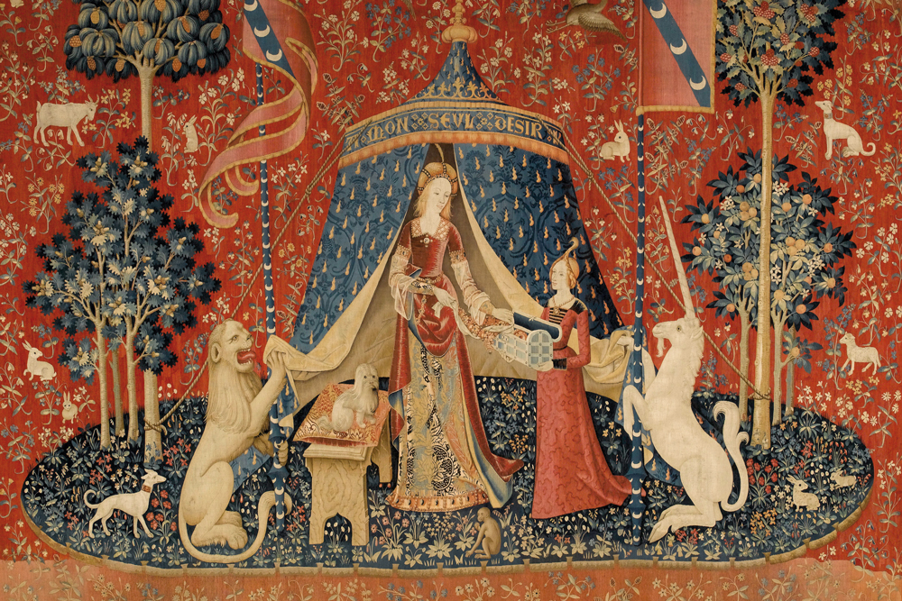 Mon seul désir, one of six tapestries from The Lady and the Unicorn (c. 1500), maker unknown. Musée de Cluny, Paris. Photo: Michel Urtado/GrandPalaisRmn (Musée de Cluny – Museé national du Moyen Âge)