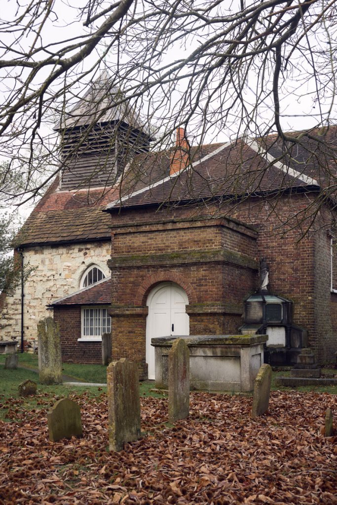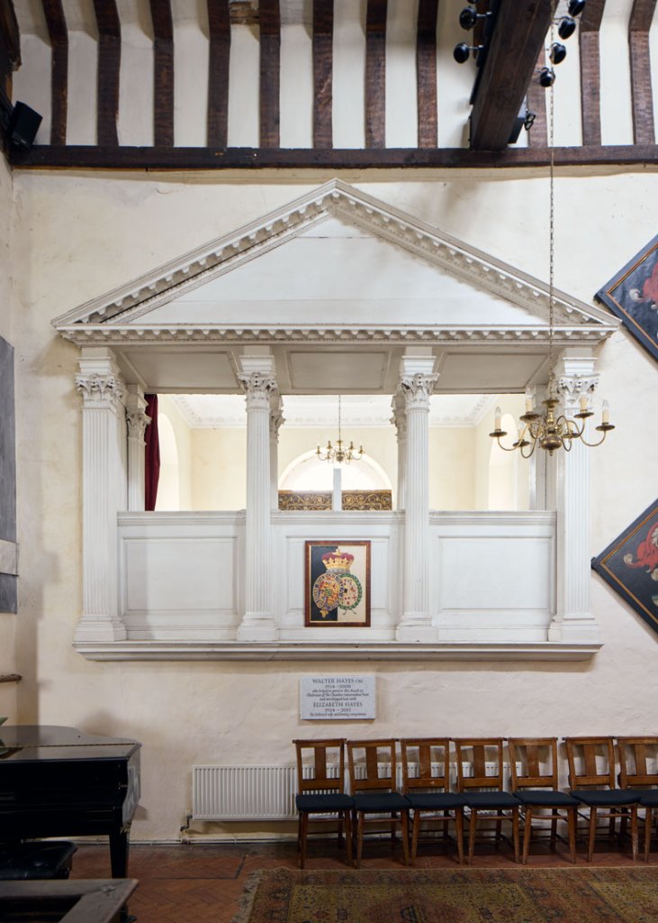 The pedimented ‘Newcastle Pew’, designed by Vanbrugh, was added on to the south flank of St George’s Church, Esher, in 1725. Photo: © Lesley Lau
